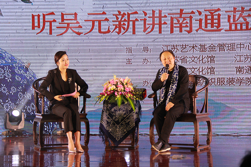 分享会上,国家级非遗传承人、中国工艺美术大师、我院蓝印花布艺术研究所所长吴元新分享了他自己从艺四十多年来的蓝印花布艺术人生,介绍了他在蓝印花布的抢救保护、技艺研究、传承创新、产学研结合方面所做的工作及取得成果。活动现场分别举行了蓝印花布时装展示,古琴艺术演奏以及蓝印花布歌曲《蓝印花》独唱。