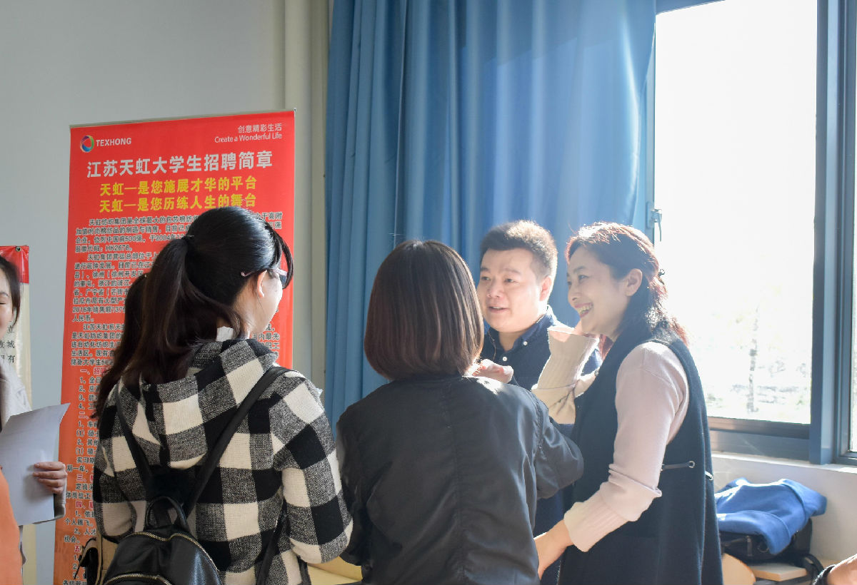 双选会现场人头攒动,场面宏大,气氛热烈。经过精心的准备,毕业生们仪态大方,自信从容。他们积极向用人单位投递简历,主动了解岗位信息,不断咨询招聘人员,展现了通大学子蓬勃向上的精神风貌和良好过硬的职业素养。参会企业纷纷表示:学生整体素质高,沟通能力好,实践能力强,期待与南通大学有更多的合作机会。来自河北永亮纺织有限公司的王经理说:通大纺服学院的毕业生专业基础、实践能力、动手能力都很过硬,希望能与学院建立稳固的教学科研、实习、就业基地,为企业发展注入新生力量。