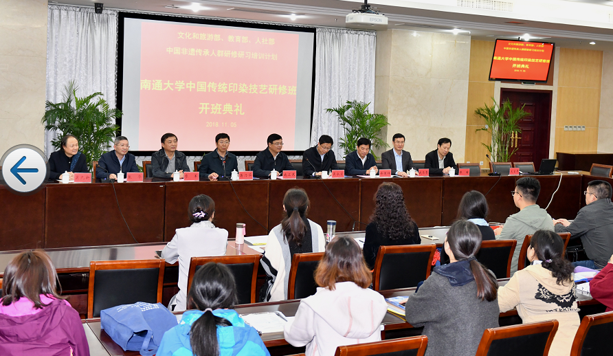 11月5日,文化和旅游部、教育部、人社部中国非遗传承人群研修研培计划南通大学中国传统印染技艺研修班开班典礼在我校举行。