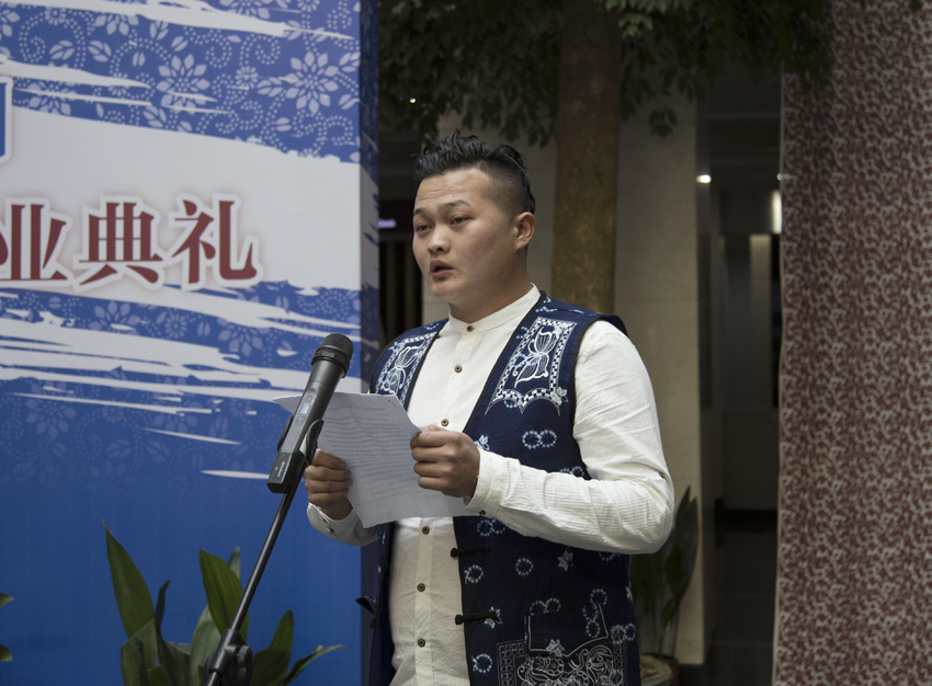 云南大理白族扎染技艺非遗传承人段袁、河北衡水手织布非遗传承人阴宗杰作为学员代表分别在结业典礼上发言,对我校为全体学员提供的良好学习、生活条件表示衷心感谢。他们表示,从专家学者身上学到了许多知识,受益匪浅,学员之间课上课下积极沟通,结下了深厚的“同窗”之情,他们将利用所学,创作出更多的非遗文化产品,有效传承并传播非遗文化。