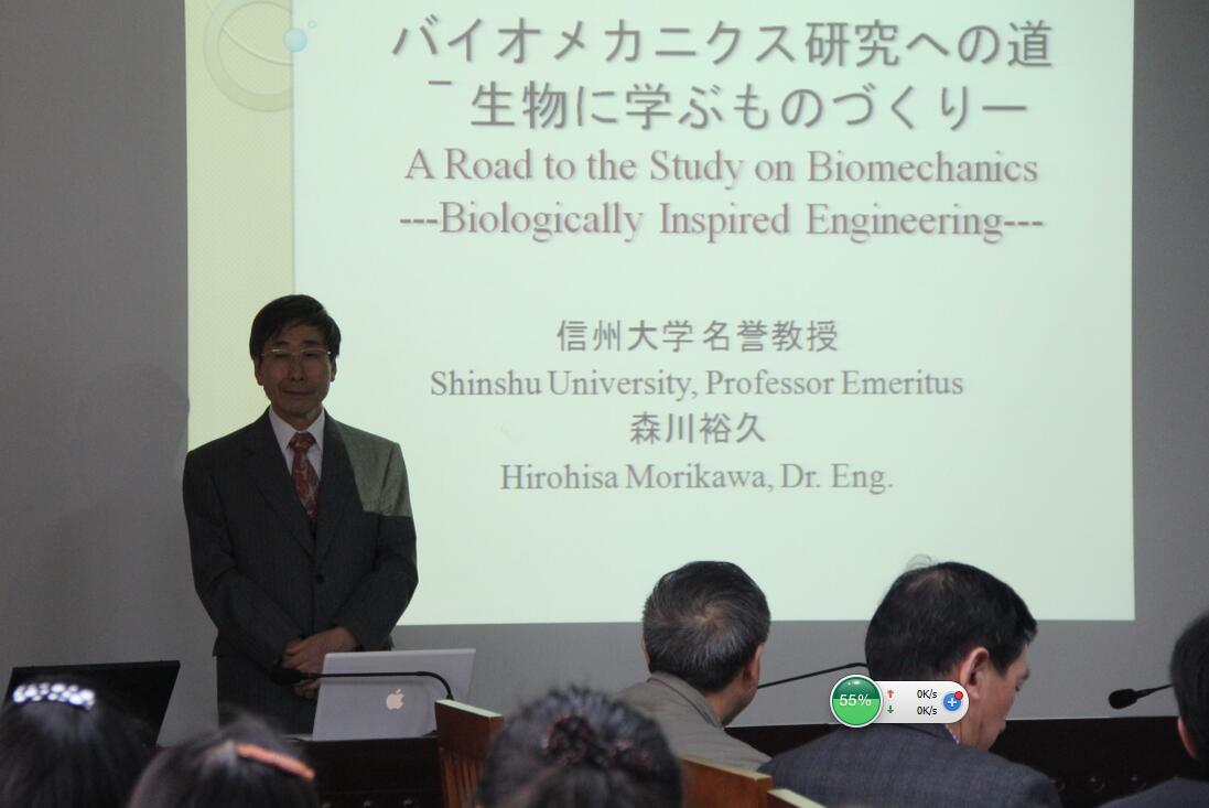 11月4日,日本信州大学博士生导师森川欲久教授应邀为我院师生,做了题为《バイオメカニクス研究への道—生物に学ぶものづくり(生物力学研究之道——向生物学习用心造物)》的学术报告。