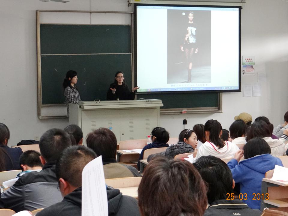 她介绍了意大利的新兴设计师,并通过大量的设计作品介绍了他们的设计风格,阐述了意大利风格的文化内涵,分析了意大利品牌在时尚界的地位,为师生带来了意大利时尚设计前沿的诸多信息。讲座气氛活跃,互动频繁,激发了学生的设计热情,赢得了师生的一致赞誉。