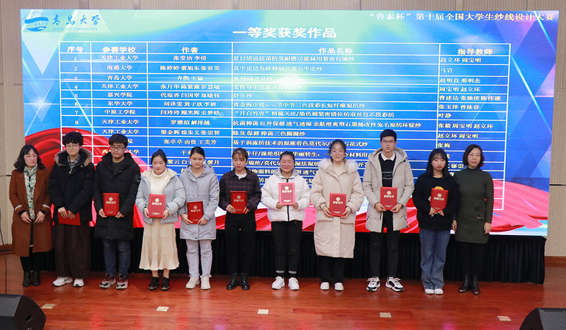 本次大赛由中国纺织服装教育学会和教育部高等学校纺织类专业教学指导委员会联合主办,青岛大学承办、鲁泰纺织股份有限公司协办。大赛共收到全国19所纺织类院校的270件作品,旨在传承、发展和开创纱线的原创性、时尚性与功能性,引导并激发高校学生的专业学习和研究兴趣,培养学生创新精神和实践能力,发现和培养一批在纺织科技上有作为、有潜力的优秀人才。(马岩)