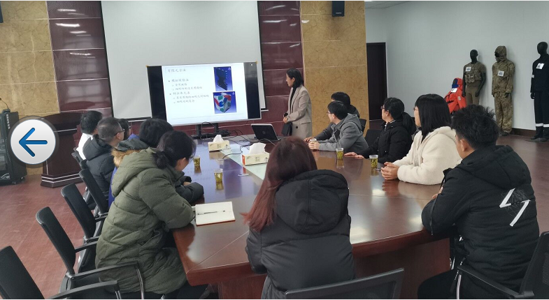 朱春红博士结合自己的学术研究进展和心得与大家进行了深入交流,着重介绍了三维织物的性能,用途以及结构设计原理和设计要点,并对几种典型的三维机织物的结构设计进行了详细说明。学院部分教师及研究生参加了交流会。