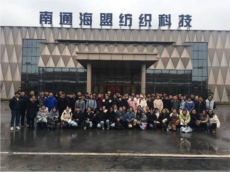1月9日,我院轻化教研室全体教师带领本专业学生前往南通海安海盟纺织科技有限公司进行为期一天的生产实习训练。海盟纺织科技有限公司是一家以生产各类服装衬布和功能复合面料为主的高新科技纺织企业,与我院轻化专业已建立了长期合作关系,目前已建设成为本专业重要的产学研基地。