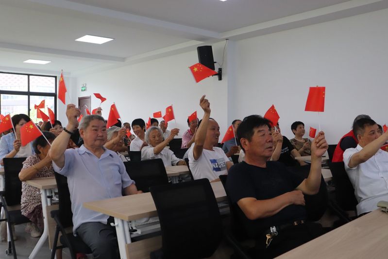在活动过程中,志愿者们首先向老人们介绍中国红十字会充分发挥党和政府在人道领域联系群众的桥梁和纽带作用,彰显红十字会“人道、博爱、奉献”精神。接着志愿者与老人们一起回顾党的历史,并观看红色电影《我和我的祖国》向老人们赠送红色书籍。最后,志愿者与老人们一起高举小红旗,唱响红色经典歌曲《我和我的祖国》,用昂扬奋进的旋律抒发对党的热爱与祝福。