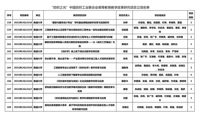 9月8日,中国纺织工业联合会公布《“纺织之光”中国纺织工业联合会高等教育教学改革研究立项项目名单》,我院共有12个项目获得立项。