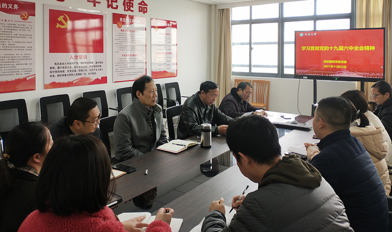 11月22日上午,我院党委召开理论学习中心组(扩大)学习会,传达学习党的十九届六中全会精神和校党委理论学习中心组集中学习(扩大)会议要求。