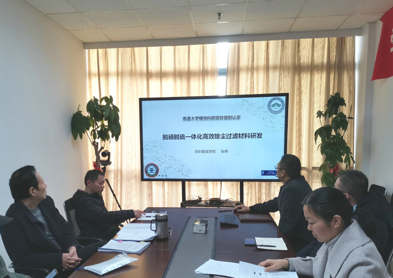 评审专家根据《南通大学横向科研项目级别认定实施细则》等相关规定,通过资料审核、现场答辩,对申报项目和认定级别进行讨论和表决。《脱硝脱硫一体化高效除尘过滤材料研发》认定为国家级一般项目,《基于水驻极的功能母粒及高效低阻熔喷过滤材料研发》认定为省部级项目。