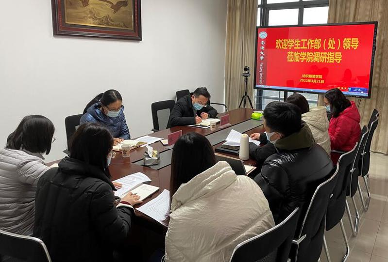 3月21日下午,校学生工作部副(部)处长徐仁成以及学生工作部学生管理科副科长张燕一行赴必威手机下载 调研指导工作。