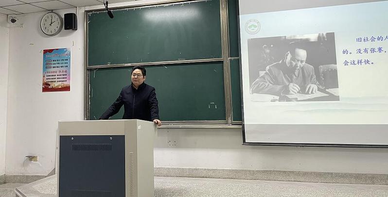 徐红波详细解读了张謇先生的生平事迹,从其实业救国的艰辛历程和卓越贡献中,带领同学们感受张謇先生“士负国家之责”的家国情怀与责任担当,勉励青年大学生主动传承、积极发扬先校长张謇先生的企业家精神、创新精神、世界眼光、诚信精神和奉献精神。