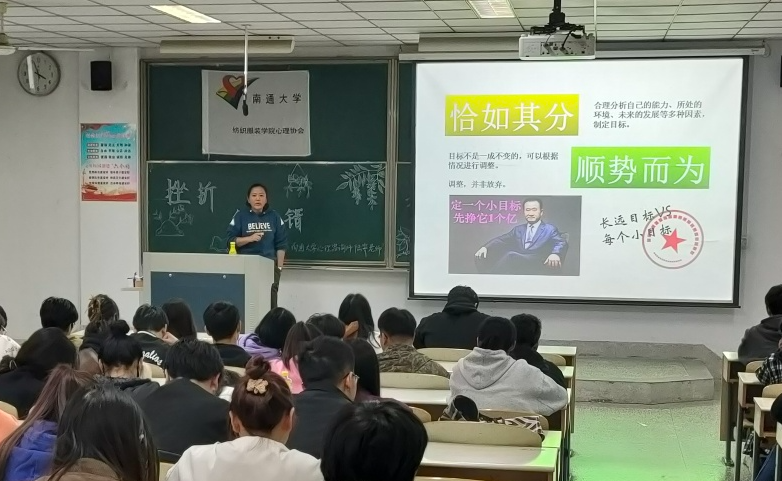 面对“挫折”这个普遍存在于人们身边的话题,陆霁老师以亲身经历带领同学们认识挫折,用真实的案例体悟挫折带来的影响,并循循善诱如何战胜挫折,告诉同学们要正视自己,不要特意骄傲自满,也不要过度贬低自己,记住“恰如其分,顺势而为”。