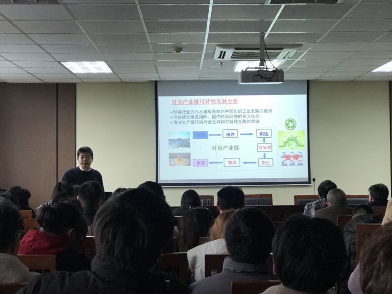 报告会上,王际平对我校纺织学科的快速发展和建设理念表示肯定,并从目前国内外纺织染色所面临的节能和环保难题,引出非水介质少水/无水染色关键技术,就亲水性纤维纺织品的非水介质少水染色关键技术体系,及疏水性纤维纺织品的低压无水染色关键技术体系做了细致阐述,还介绍了他已实现产业化的涤纶低压无水染色技术及低压无水染色、压力烘干及介质回收系统的相关应用成果。