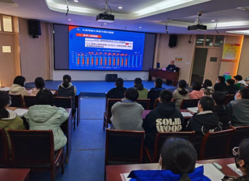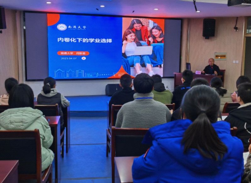 南通大学经济与管理学院何新易教授做了题为《内卷化下的学业选择》的专题讲座。讲座先是阐释了“内卷化”、“学业”、“选择”的内涵,然后从“学业追求的路径”入手,用数据揭示了从高考到大学的内卷化现状,通过对内卷化原因的分析,勉励创新班的学生明确目标、树立信心、持之以恒。最后,何教授向高中学子们介绍了南通大学的基本情况和招生政策,祝愿他们在学业上都能“百尺竿头更进一步”。