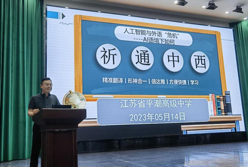 徐托做了题为《人工智能与“外语危机”——AI语境下如何“祈通中西”》的专题讲座。讲座以“祈通中西”为切入点,聚焦于人工智能和“双减”背景下高中生外语学习问题,通过AI辅助翻译活动的利与弊,透视人工智能时代外语的作用,分析当下外语学习的必要性、未来外语学习的趋势等热点问题。徐院长以鲜活生动的案例、通俗易懂的语言,在深入浅出中启发师生认识到努力学习外语的重要性。