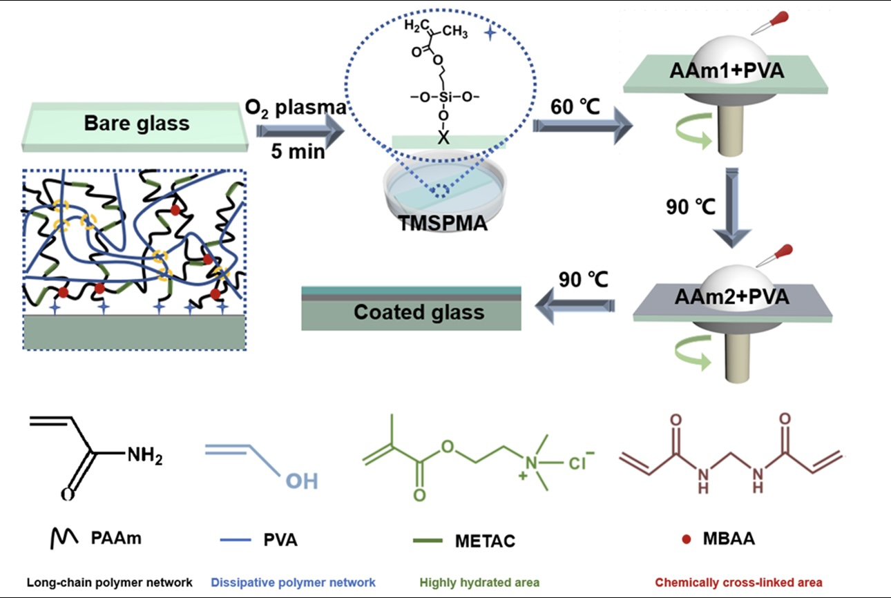 本文通过自旋涂层技术在多种基材上开发了一种双层透明防雾聚丙烯酰胺(AAm1+2)@水凝胶涂层,内层(AAm1)可与基材通过化学结合并长时间锁住水分,外层(AAm2)对外部环境具有优异的耐磨性能。该涂层在降低冰的粘附性和抗油污污染方面也非常有效。这项工作为合理设计高性能防雾涂料走向商业应用提供了新的策略。