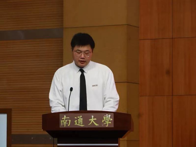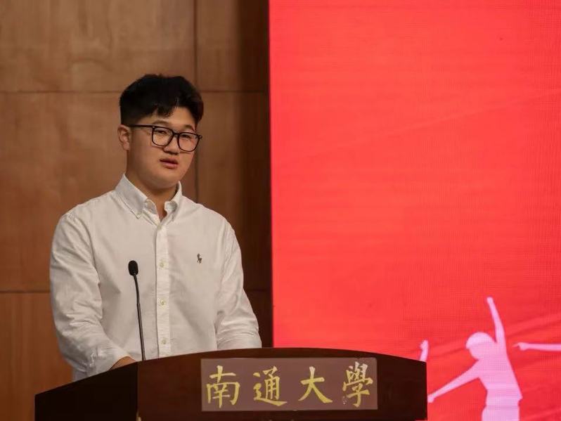 院学生会主席、轻化工程201班张君同学作为本科生老生代表发言,他鼓励学弟学妹们要珍惜时光、坚持学习,积极在志愿服务、社会实践、文体活动、学科竞赛中锻炼自我、提升自我综合素养,以孜孜不倦的精神上下求索,以锐意创新的激情奋勇向前,用青春续写通大纺织人的灿烂华章。
